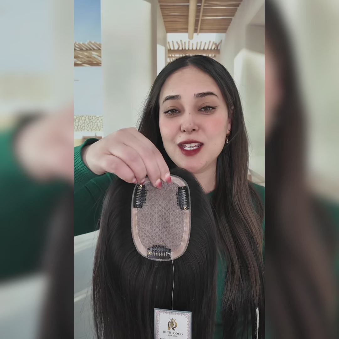 قطعة شعر علوية طبيعية قابلة للتثبيت بمشابك مع قاعدة لفروة الرأس - أحجام متعددة