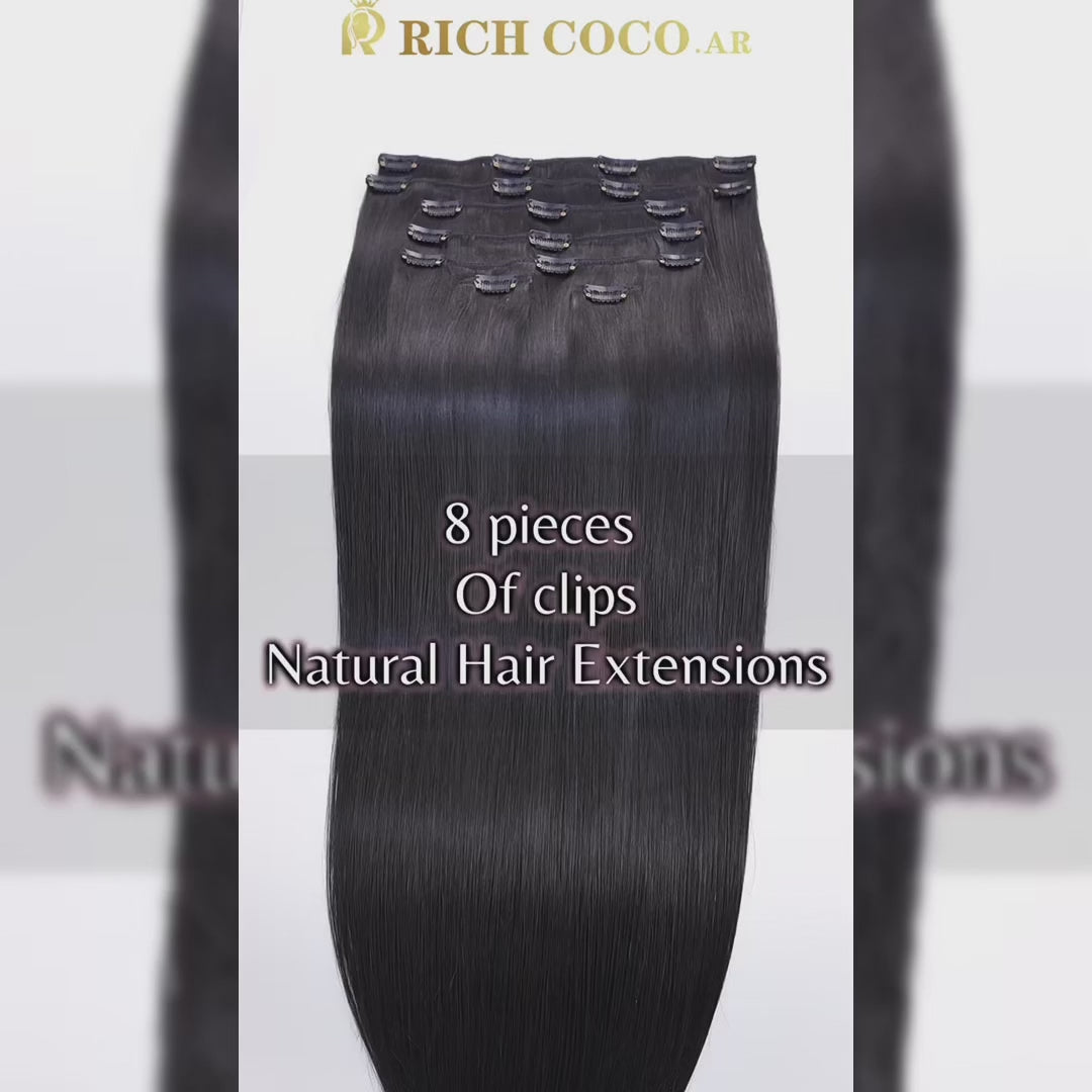 وصلات شعر بشري طبيعي بمشابك مستقيمة وصلات شعر بشري طبيعي بمشابك مستقيمة